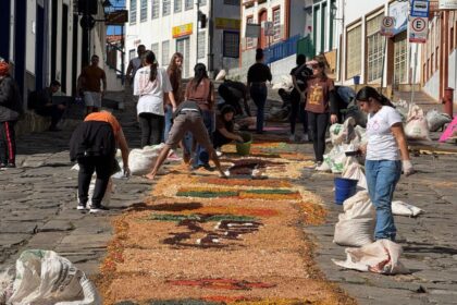 Moradores da cidade histórica elaboram decoração especial das ruas com calçamento de pedra para procissão de Corpus Christi. Fé, tradição, arte e beleza. Esses elementos foram unidos nesta quinta-feir...
